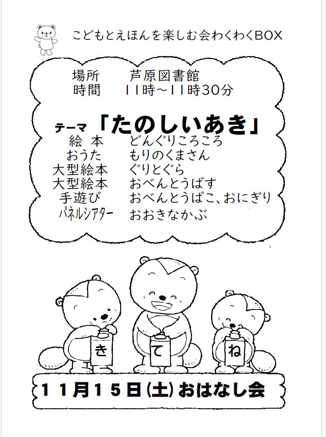 ホーム > お知らせ > おはなし会のお知らせ❣(芦原図書館)