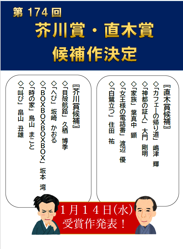 ・「第174回 芥川賞・直木賞候補作が決定しました!」